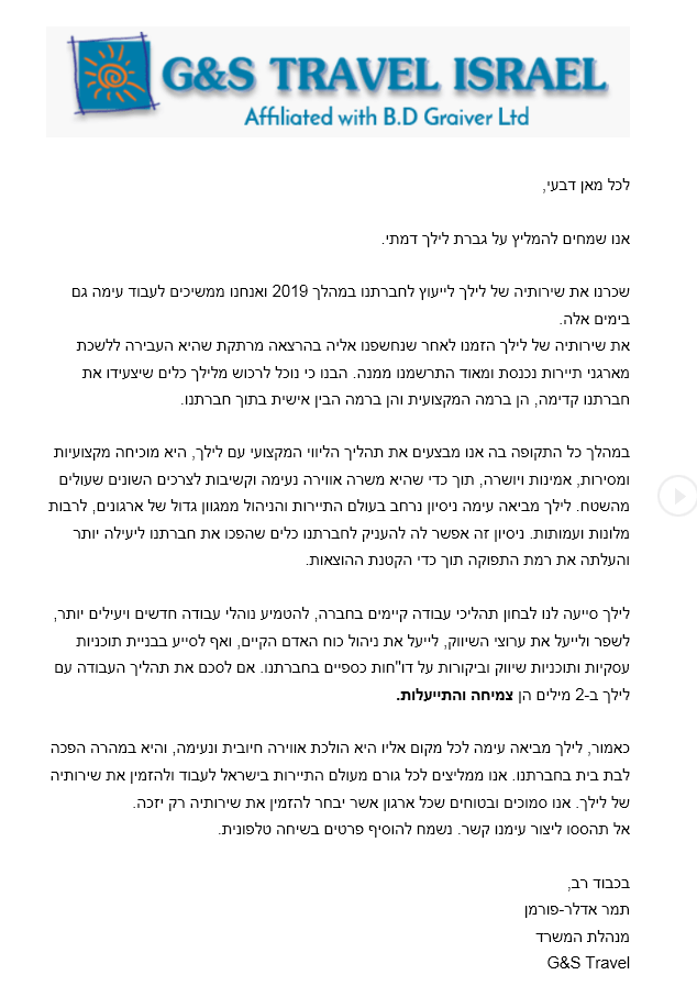 חברת G&S TRAVEL של ב.ד גרייבר תיירות