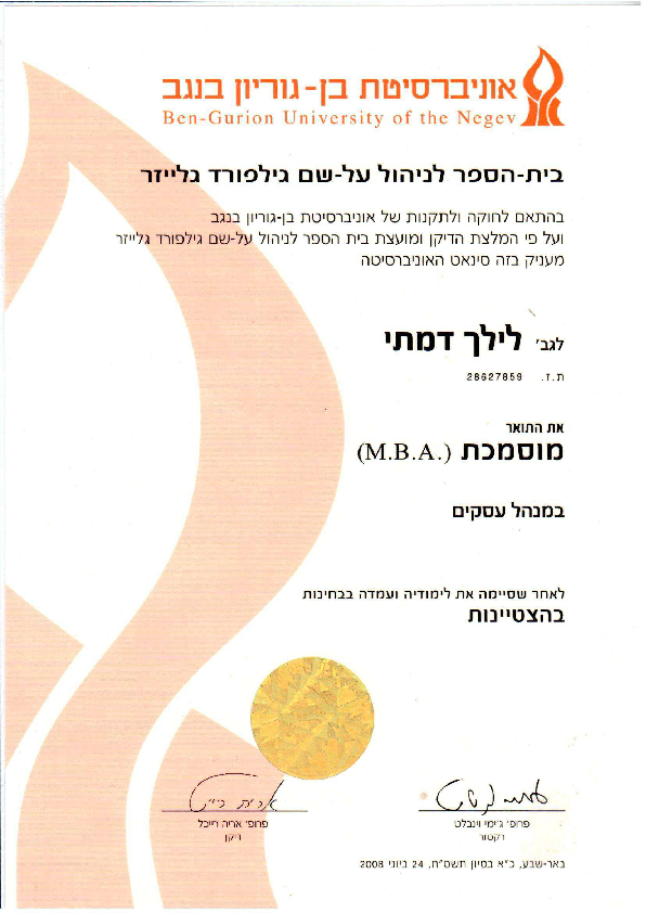- תואר שני במנהל עסקים ובמשפטים ללא משפטנים.